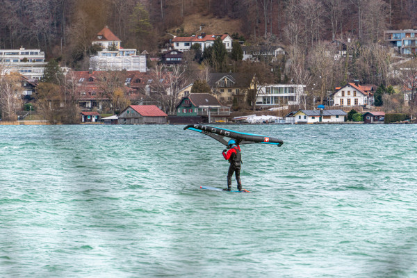 - Safety: Der Wing hat keinen Mast wie beim Windsurfen, der zu Verletzungen bei Schleuderstürzen führen kann. Auch potentielle Gefahren wie beim Kitesurfen sind ausgeschlossen, da du lediglich mit einer Handleash mit dem Wing verbunden bist, damit dieser nicht wegfliegt.