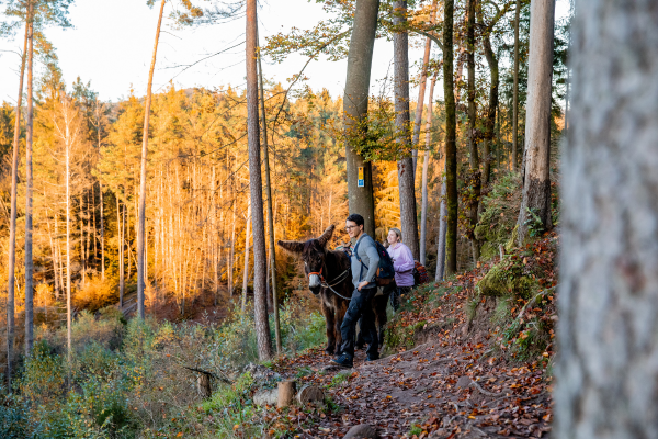 Unsere 3-4h Wanderung ist die längste Tour und führt über schöne Wald- und Wiesenwege durch das Dahner Felsenland. Nach dem Kennenlernen laufen wir gemeinsam los, unterwegs gibt es viel Wissenswertes zu lernen, vor allem im Umgang mit den Eseln. Während den Pausen bleibt Zeit zu genießen.