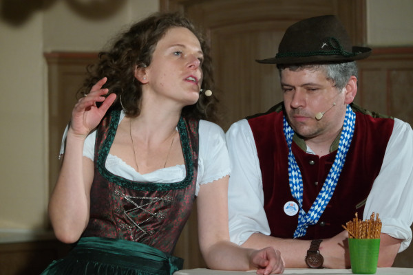 Bayrisch für Anfänger: ein Muss für alle, die Bayern lieben und gerne lachen. Essen und Trinken hält Leib und Seele zusammen. Doch nicht nur der Geschmack, auch die anderen Sinne gehören bedient und vor allem die Lachmuskeln trainiert.Dazu eignet sich das Comedy Dinner "Bayrisch für Anfänger" hervorragend, denn im Anschluss an ein köstliches 3-Gänge Schlemmer-Menü wird gelacht bis sich die Gasthaus-Balken biegen. Wenn Schorsch Kirchmeier als selbstberufener Dozent und Oberlehrer der schrecklichen Prophezeiung einer Studie - bayrischer Dialekt würde bis 2040 ausgestorben sein - entgegenwirkt, bleibt kein Auge trocken.Der Reiz dieses ganz speziellen Unterrichts an der "Ackerdemie für die Künste der bayrischen Lebensart" liegt im vehementen Kampf des Urbayerns Schorsch gegen die gschaftlhuberische Schulinspektorin Frederike von Biederstädt, die sich im Auftrag des bayerischen Kultusministeriums an Ort und Stelle äußerst wichtig macht.Während Schorsch mundartlich ungeniert seine Weisheiten über Brauchtum und Tradition seiner Heimat zum Besten gibt, ist Preußin Frederike hilflos hin und hergerissen, zwischen korrekter Amtsausführung und ihren liebenswerten - selbstverständlich gscherd kommentierten - Anbiederungsversuchen. Ein herrliches Spektakel und Sie - liebe Besucher - mittendrin Freuen Sie sich auf einen köstlich bayrischen Abend!