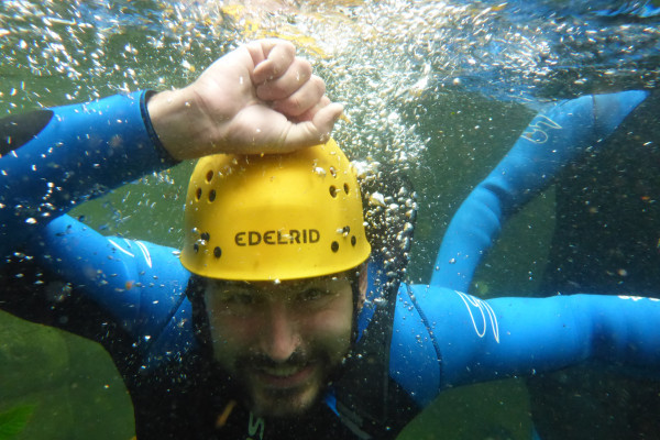 Hier erleben Canyoning Neulinge, Kinder und Angsthasen den Adrenalinkick des Canyoning. Der ausgebildete Guide begleitet euch durch die schöne, offene Schlucht mit Abseilstellen, klaren Becken und luftigen Sprüngen - Level 1 - für Familien, Kinder und Einsteiger geeignet