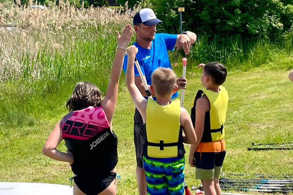 Nachdem wir dann ein paar Grundschläge gelernt haben, geht es auch schon ab aufs Wasser.