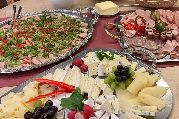 Genießen Sie eine reichhaltige Auswahl an unserem fränkischen Spezialitäten Buffet mit frischem Pretzfelder Holzofenbrot - dieses enthält auch verschiedene vegetarische Köstlichkeiten.