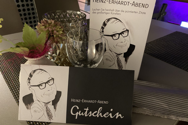 Heinz Erhardt Abend. Lachen Sie herzhaft über die lustigen Redensarten des großartigen Künstlers Heinz Erhardt, den unvergessenen Kabarettisten der ersten Stunde. Dazu servieren wir Ihnen erlesene Köstlichkeiten – eine beeindruckende Zeitreise, die Sie so schnell nicht vergessen werden!