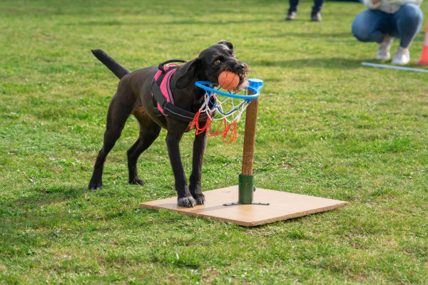 - Handling-Übungen (notwendig für das Anlegen von Halsband/Geschirr und Leine, bei der Pflege des Hundes, Tierarztbesuch etc.)