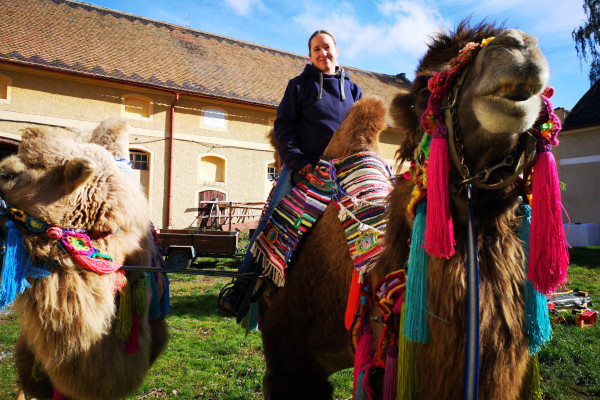 Wir bieten Ihnen geführtes Kamelreiten durch den Kiesdorfer Grund und auch auf dem Hof. Es sind keinerlei Vorkenntnisse im Reiten erforderlich. Erleben sie die wunderschöne Oberlausitz aus einem ganz anderen Blickwinkel.