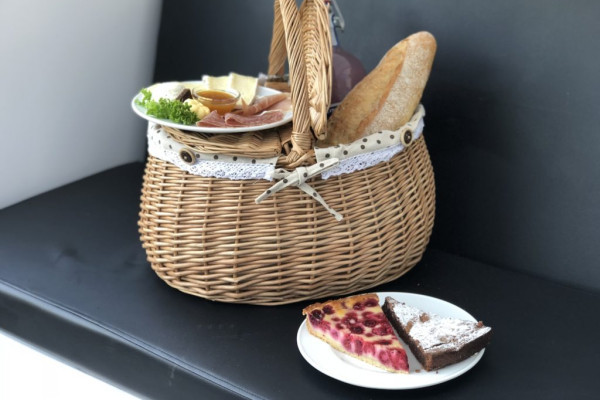 - Entspanne dich auf einer gemütlichen Decke bei französischen Torten und Blätterteiggebäck.