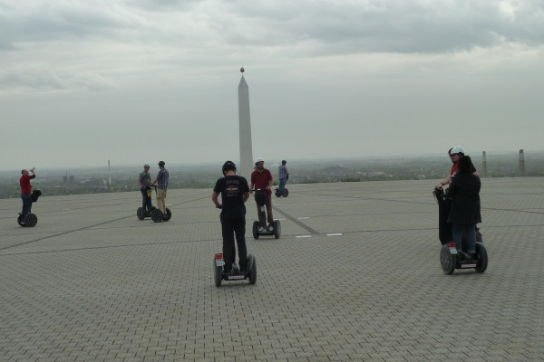 Tour Herten - Halde Hoheward 69,00€Wir starten unsere geführte Tour auf einem Parkplatz vor dem Landschaftspark Hoheward. Dort erhalten alle Teilnehmer eine professionelle Einweisung in Theorie und Praxis durch unseren freundlichen Tourguide. Nachdem alle Tour-Teilnehmer sich sicher auf dem Segway bewegen können, starten wir unsere Tour vom Cafe Ewald aus. Zunächst fahren wir hinauf zur Ringpromenade. Während wir die Ringpromenade entlang fahren, bleiben wir immer mal wieder an einigen der sogenannten „Balkone“ stehen und genießen den atemberaubenden Ausblick auf das Ruhrgebiet. Nachdem wir die Halde ca. zu einem Drittel umrundet haben, fahren wir über die spektakuläre Drachenbrücke hinab zu einem weiteren Schacht der ehemaligen Zeche Ewald. Hier machen wir eine kleine Pause um unsere Beine ein wenig zu vertreten. Anschließend geht es über die Drachenbrücke wieder hinauf zur Ringpromenade mit ihren vielen Balkonen. Nach ca. 15 Minuten verlassen wir die Ringpromenade erneut und machen uns auf den Weg zur benachbarten Halde. Der Halde Hoppenbruch. Oben angekommen, lehnen wir unsere Segway PT an das Windkraftrad und genießen einfach nur die tolle Aussicht. Anschließend geht es wieder hinauf zum Landschaftspark der Halde Hoheward, wo noch viele faszinierende Aussichten und beeindruckende Bauwerke, wie die Ewald Empore, das Horizontal-Observatorium und die Sonnenuhr darauf warten von uns entdeckt zu werden. Diese Tour bietet kulturell interessante Aspekte, wunderschöne Panoramablicke und eine tolle Segwaystrecke. Ganz oben auf der Halde, in etwa 100m Höhe, sieht man erst einmal wie schön Grün das Ruhrgebiet doch ist. Nach all den tollen Panoramablicken und bleibenden Eindrücken, verlassen wir die Halde und kehren zum Startpunkt, dem Cafe Ewald, zurück. - Die Tourdauer beträgt ca. 2,5 Stunden- Mindestvoraussetzung für eine Teilnahme ist ein Alter von 14 Jahren.