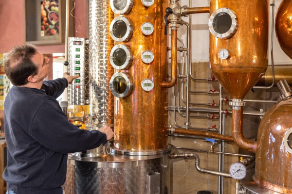 Wir erklären Ihnen, wie aus Obst Maische und daraus ein fertiges Destillat wird. An unserer traditionellen Destillieranlage veranschaulichen wir den Herstellungsprozess und gehen auf unterschiedliche Brenntechnologien ein. Sie lernen einen Obstbrand von einem Geist zu unterscheiden und erfahren jede Menge Interessantes über die verschiedenen Möglichkeiten der Veredelung u.a. die Fasslagerung, welche jedem Destillat eine ganz individuelle Prägung verleiht. So gewinnen Sie einen Einblick in den typischen Tagesablauf in einer Brennerei.